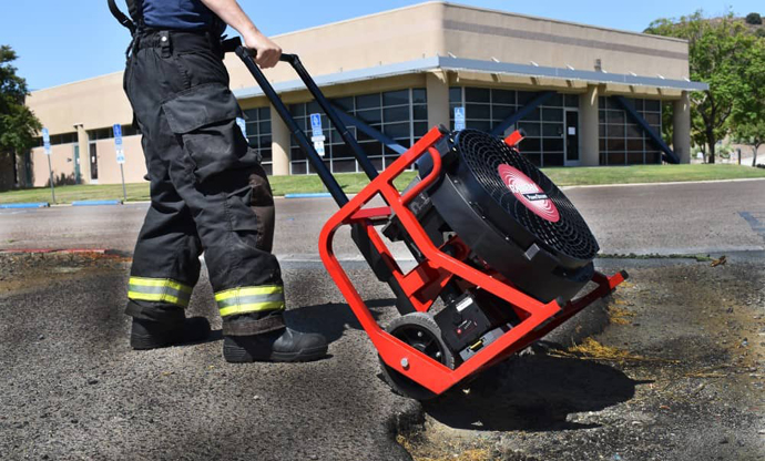2、EX150Li充電式排煙機采用超大車輪設計(直徑:21.59cm 厚度:6.35 cm);