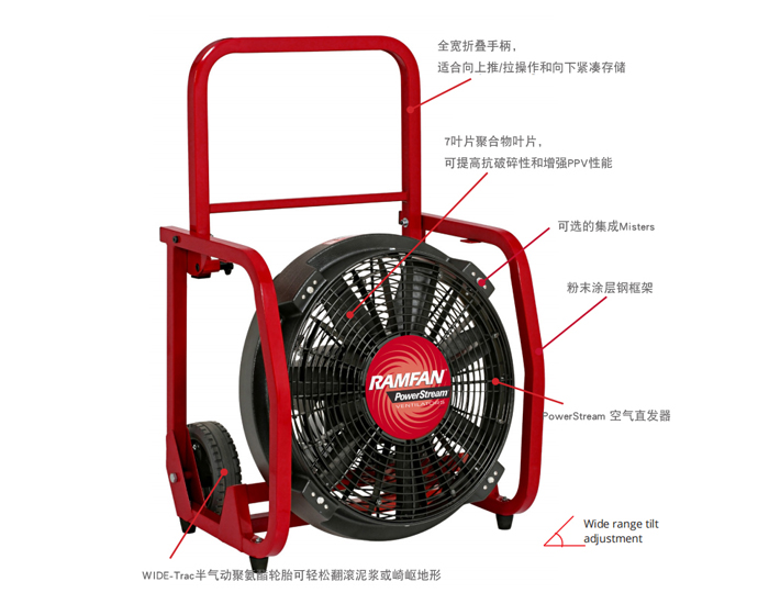 3、采用PowerStream "力弓"技術使風量更集中,風力更強大,噴射距離更遠,可實現無障礙出入火場通道,并可能有效降低使用中產生的噪音;