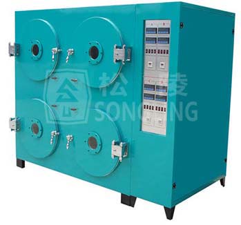 本真空干燥箱是松陵電器研究、開發(fā)的專用于電池極片烘烤的新產(chǎn)品。真空室為圓筒形,便于電池極片整卷裝載,在真空狀態(tài)下烘烤。多個真空室組合成一個整體,結構緊湊,節(jié)省工作場地;配置一臺真空泵抽真空,多個真空室分別控制加熱,獨立工作,靈活方便。同時,抽真空系統(tǒng)采用數(shù)顯真空計,自動控制真空度的上下限。真空室的外部和中軸均設置有加熱裝置,并分別配置高精度溫控儀控溫。真空室圓門的中間設置圓形觀察窗。產(chǎn)品投放市場后,受到了電池極片生產(chǎn)廠家及相關用戶的好評。