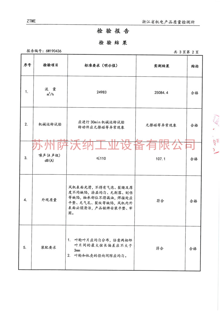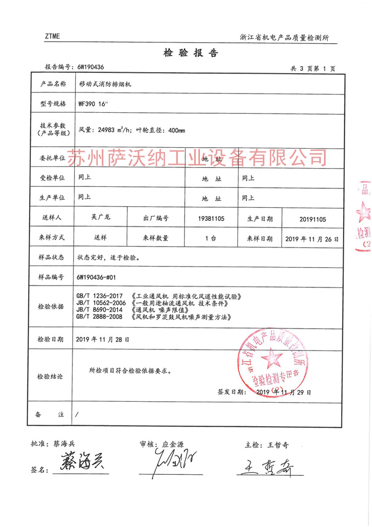 八、SWN-WF390水力驅動防爆排煙機檢測報告: