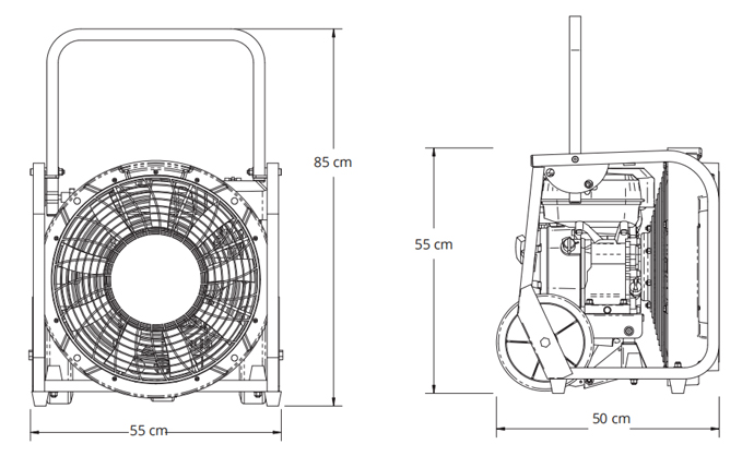 · GX350移動式排煙機(jī)是扇葉直徑為46cm的汽油驅(qū)動正壓風(fēng)機(jī);